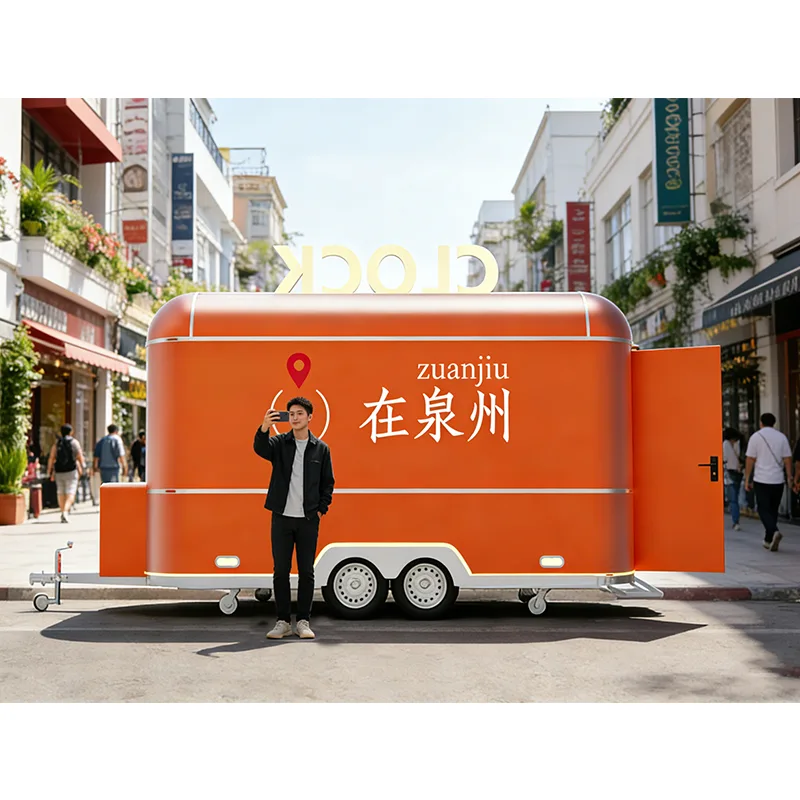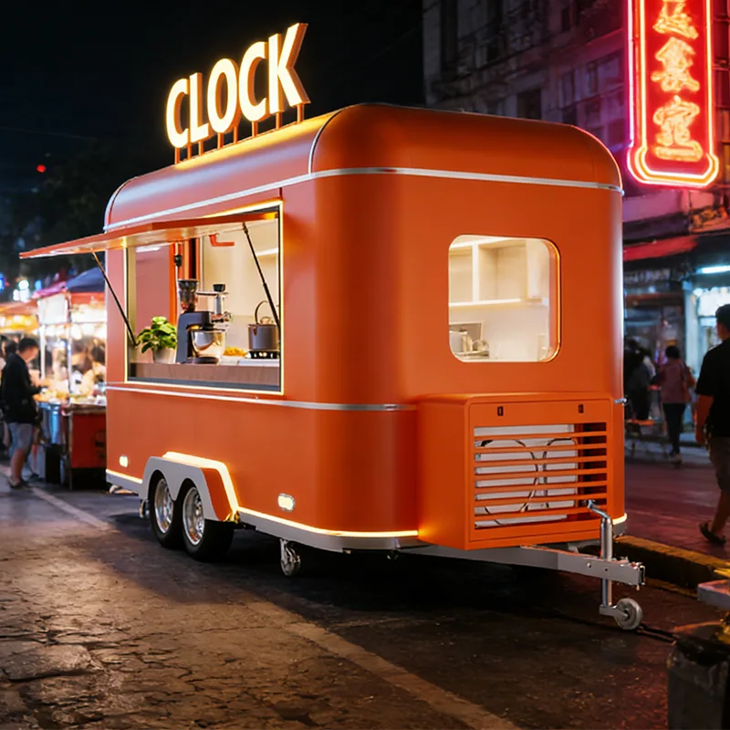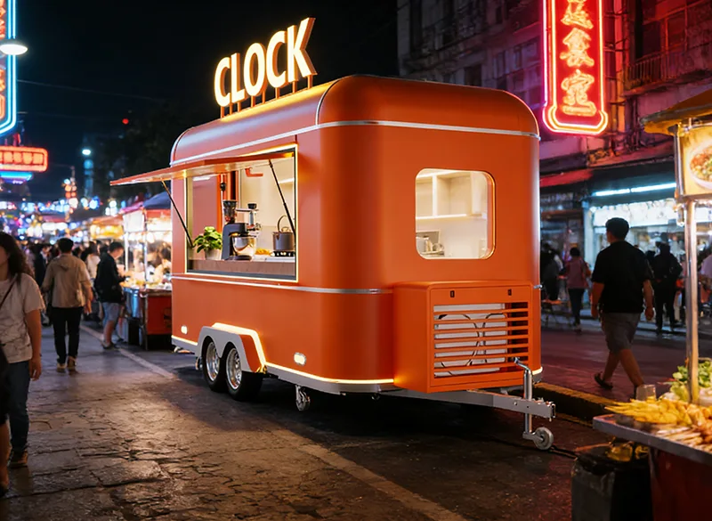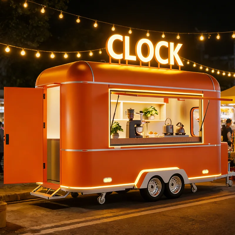 コンセッショントレーラーは、強化された牽引機構と安定性の高いサスペンションシステムを備えた頑丈な鋼構造フレームを使用しており、ピックアップトラックや小型トラックで簡単に牽引できます。景勝地の小道、スタジアム周辺、展示公園などの道路状況に適応します。導入は効率的で耐久性があります。本体には食品グレードの断熱材と耐腐食性の複合パネルが使用されており、屋外の温度差や厳しい天候に耐えられるよう、全領域防錆処理と密閉防水処理が施されています。外観はフル次元のブランドカスタマイズをサポートし、フランチャイズブランドのシステムを正確に再現でき、埋め込まれた光るロゴ、カスタムペイント、折りたたみサンシェードと組み合わせて、ブランドの認知度を高め、ブランドイメージの一貫した出力を支援します。内装はすべて 304 ステンレス鋼でできており、滑り止めと耐油性のカウンタートップ、壁、床は掃除が簡単で、フランチャイズ運営のコンプライアンス要件を完全に満たしています。